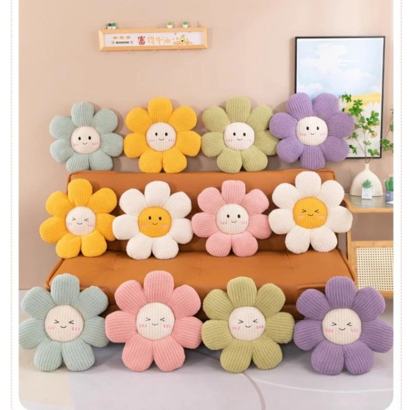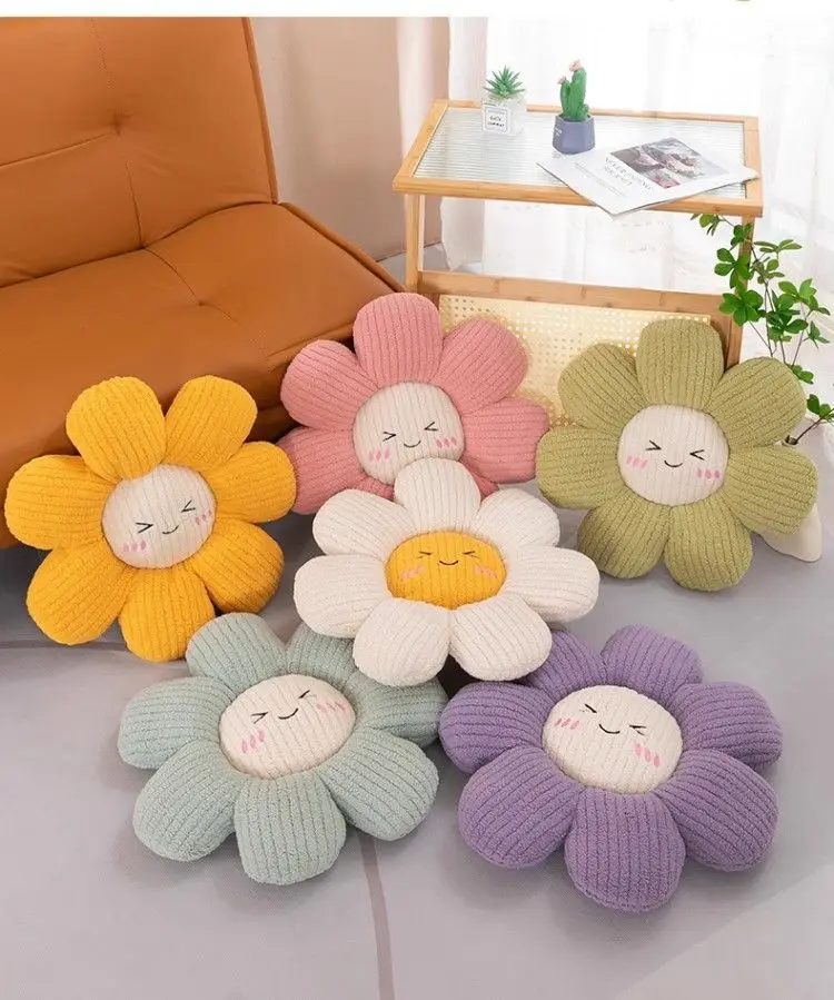 Korean Flower Throw Pillows Sun Smiling Face Cushion Sofa Car Sit Bedside Backrest Decorative Lovely Floor Seat Mat Office Chair